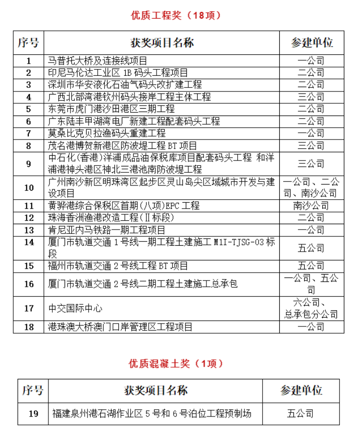 四航局獲19項(xiàng)中國(guó)交建質(zhì)量獎(jiǎng)