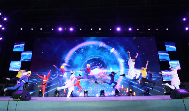 演出在大型舞蹈《我們都是追夢人》中拉開序幕。深中通道建設(shè)者帶來了詩朗誦《鑄夢深中》,展現(xiàn)了中交人 “交融天下,建者無疆”的胸襟與魄力,女子群舞《青花瓷韻》傳遞了中國傳統(tǒng)藝術(shù)之美,歌曲三重奏《加油干》令現(xiàn)場氛圍火爆,肩上芭蕾《東方天鵝》以其高難度的技巧和絕美的藝術(shù)表現(xiàn)博得了在場觀眾的陣陣喝彩,獨(dú)唱《幸福中國一起走》展示了廣東日新月異的發(fā)展變化,相聲《談大論小》在贊美深中通道這一重大工程之余也提醒建設(shè)者要時(shí)刻注意安全防護(hù),女子群舞《雨打芭蕉》讓觀眾的身心得到了放松,抗疫歌曲《少年》和《隔不斷的愛》深深打動(dòng)了在場觀眾,激勵(lì)建設(shè)者不忘初心、珍惜家人。