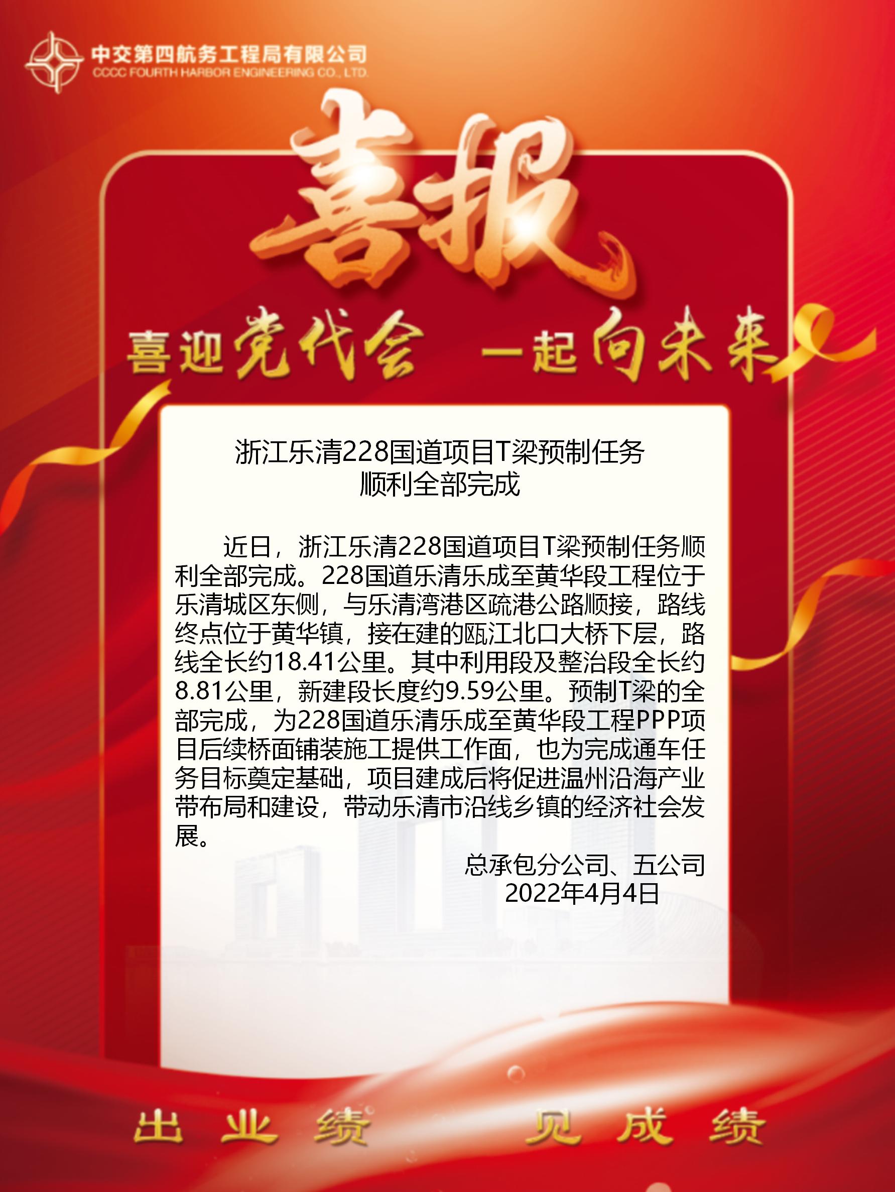 浙江樂清228國道項(xiàng)目T梁預(yù)制任務(wù)順利全部完成