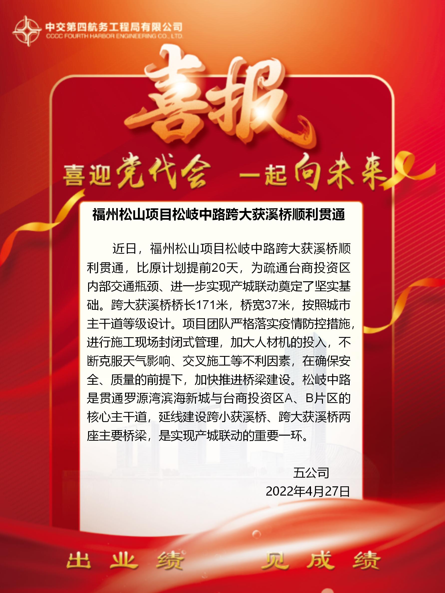 福州松山項目松岐中路跨大獲溪橋順利貫通