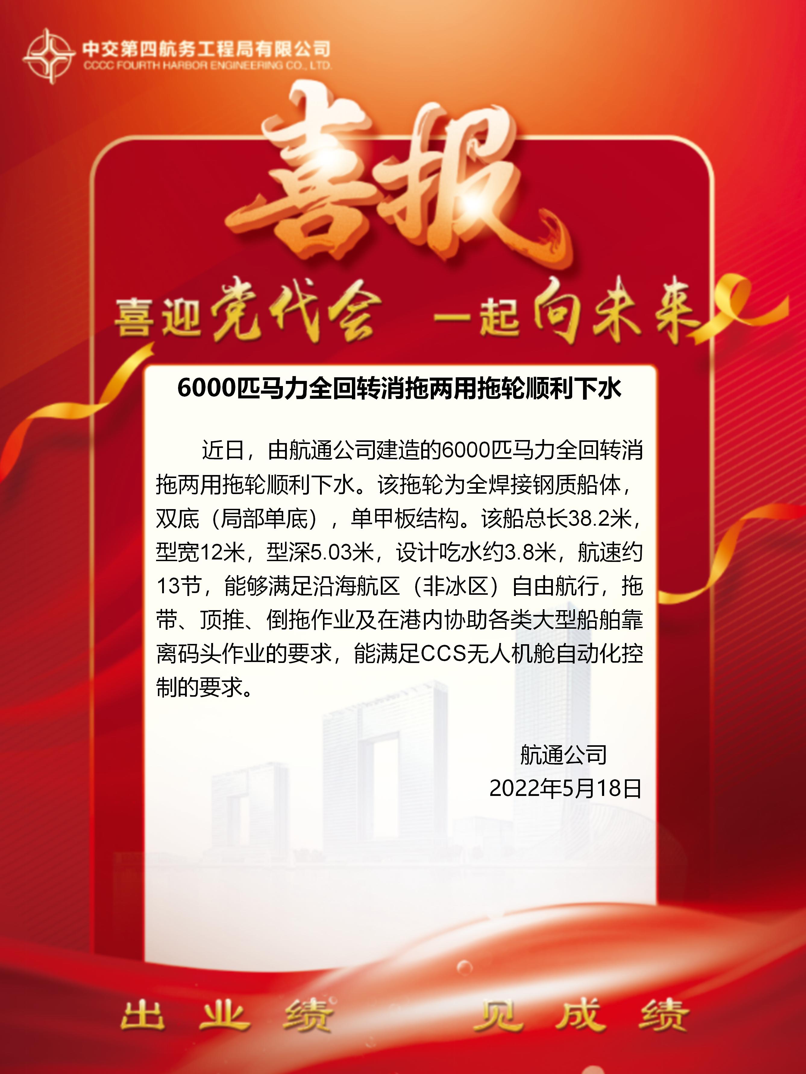 6000匹馬力全回轉(zhuǎn)消拖兩用拖輪順利下水