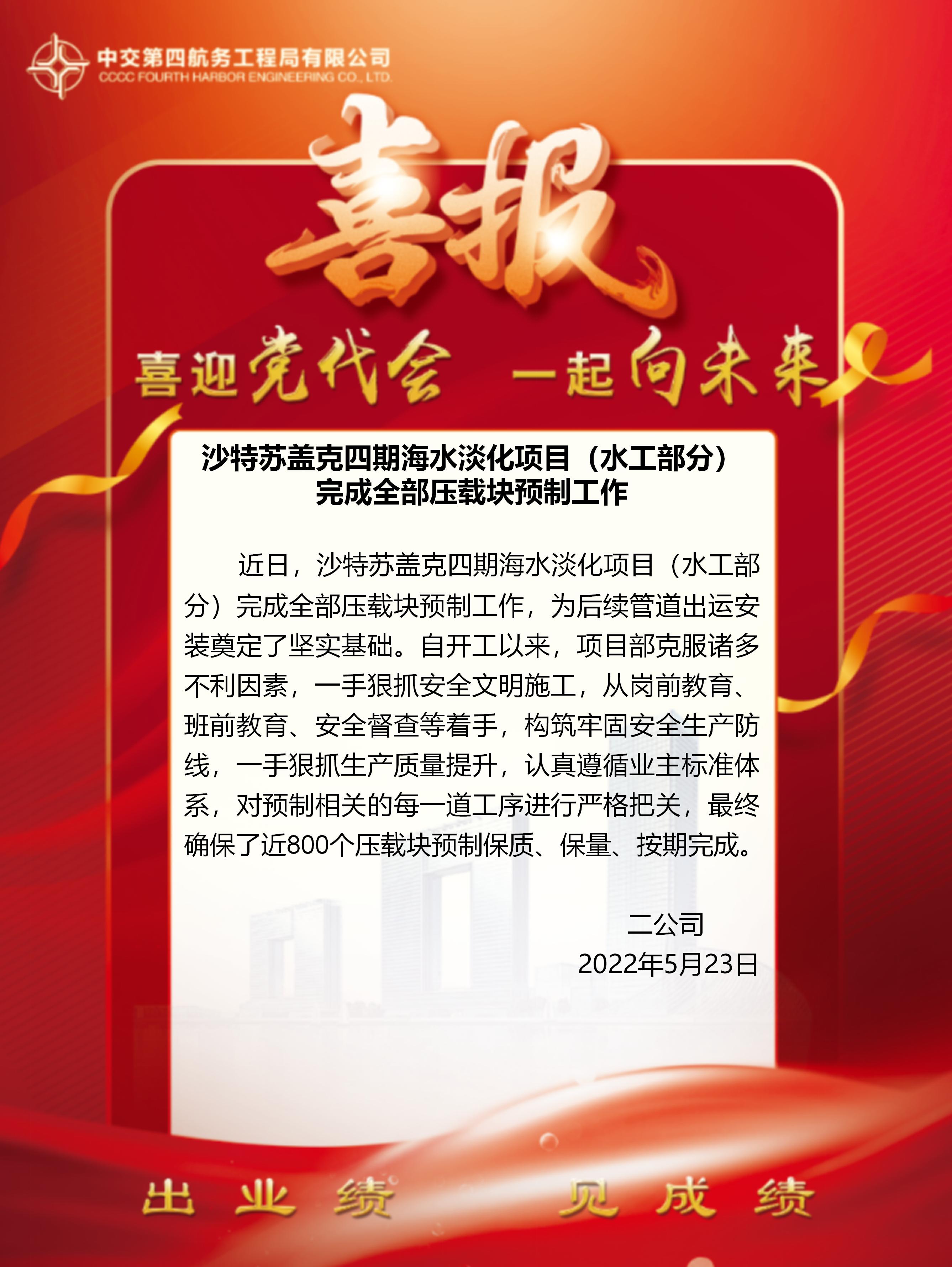 沙特蘇蓋克四期海水淡化項(xiàng)目(水工部分)完成全部壓載塊預(yù)制工作