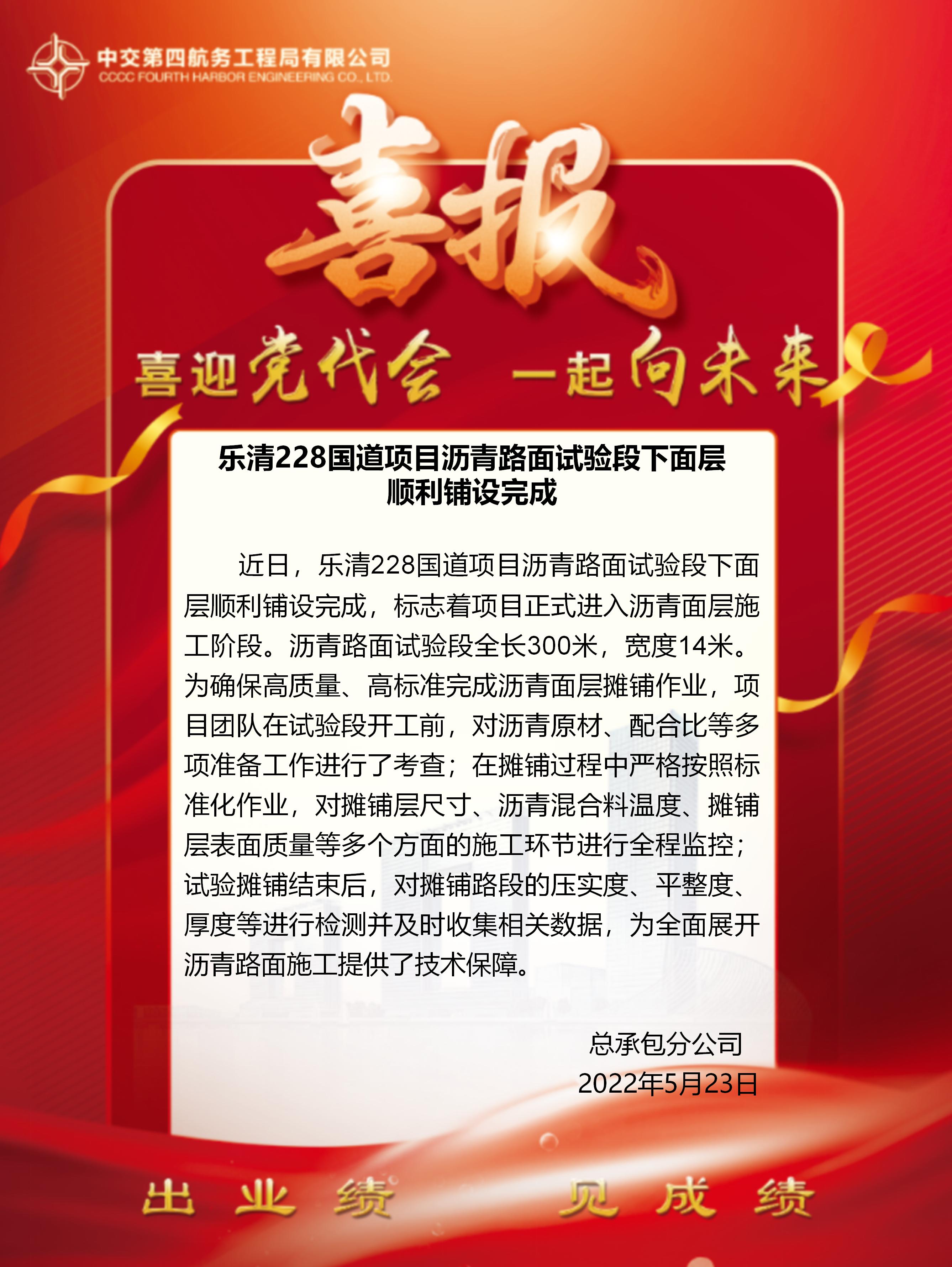 樂清228國道項目瀝青路面試驗段下面層順利鋪設完成