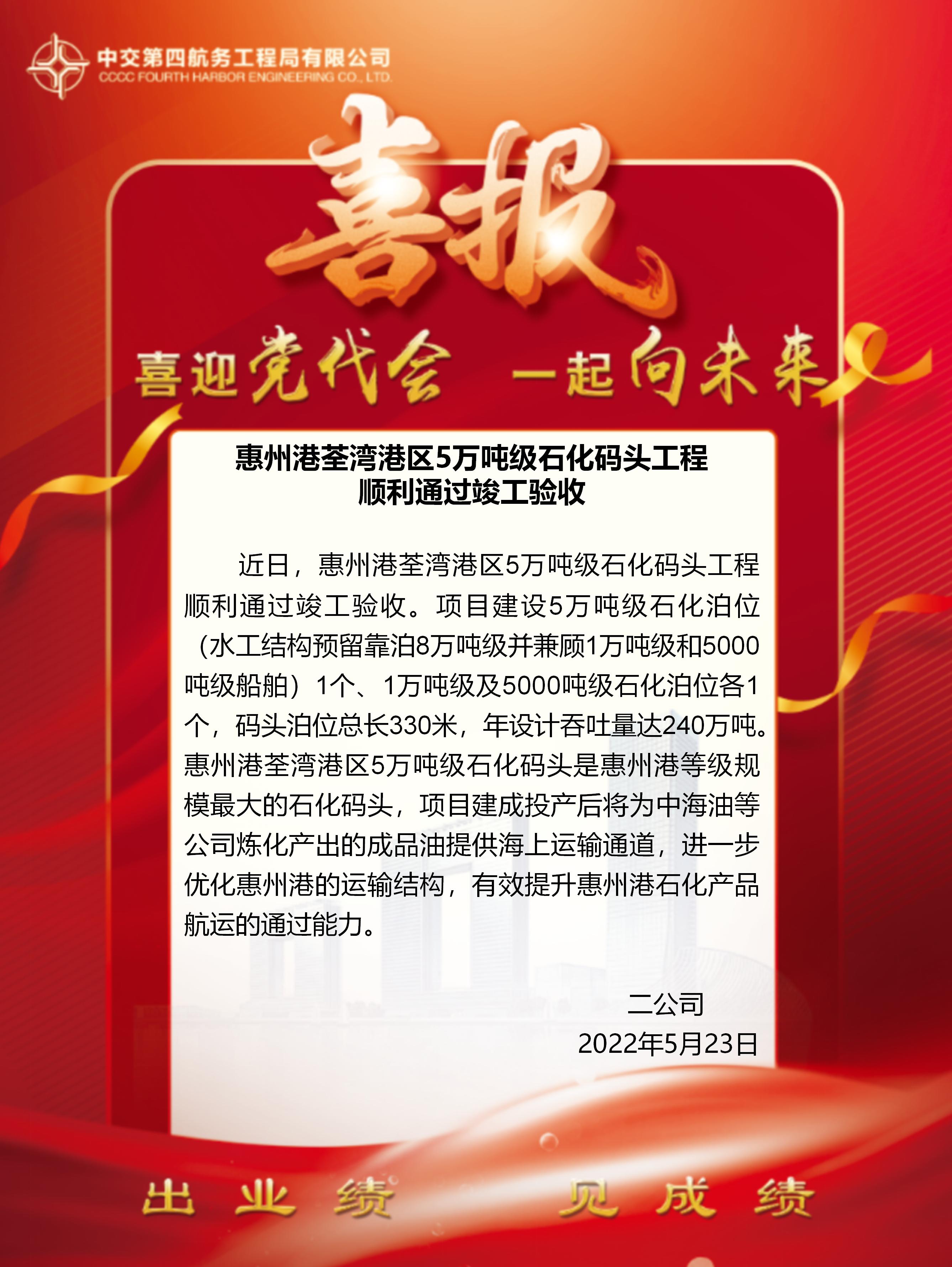 惠州港荃灣港區(qū)5萬(wàn)噸級(jí)石化碼頭工程順利通過(guò)竣工驗(yàn)收