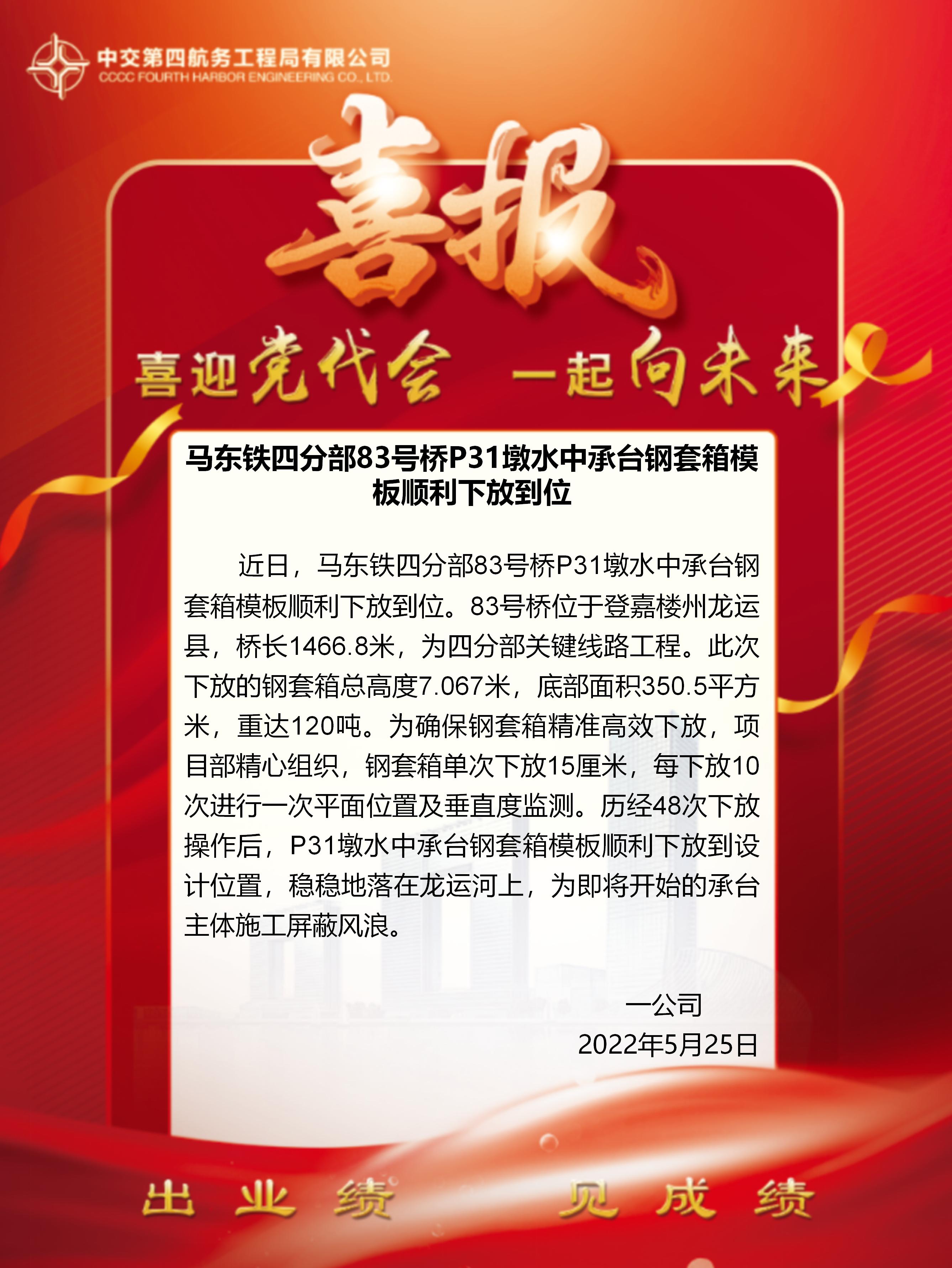 馬東鐵四分部83號橋P31墩水中承臺鋼套箱模板順利下放到位