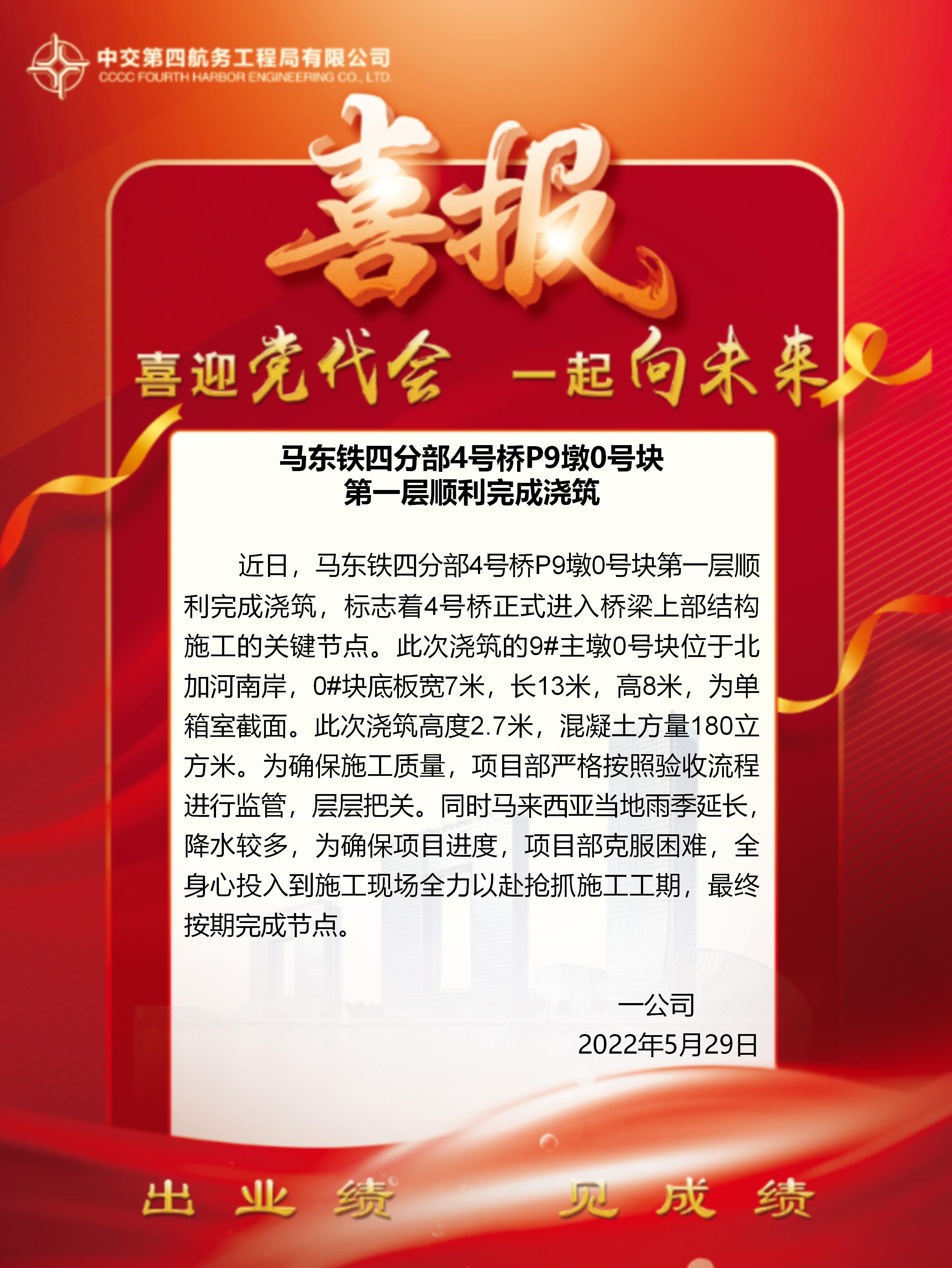 馬東鐵四分部4號(hào)橋P9墩0號(hào)塊第一層順利完成澆筑