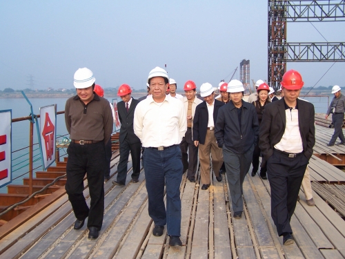 12月6日,廣東省交通廳廳長(zhǎng)張遠(yuǎn)貽一行在公司董事長(zhǎng)梁卓仁、總經(jīng)理孫國(guó)強(qiáng)的陪同下,專(zhuān)程到我公司目前最大的BOT項(xiàng)目廣明高速公路工地考察。佛山市長(zhǎng)梁紹棠、副秘書(shū)長(zhǎng)、交通局長(zhǎng)盧立湃以及高明區(qū)有關(guān)領(lǐng)導(dǎo)到場(chǎng)迎接。