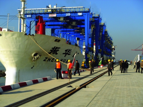 12月22日上午,滿載輪胎式門(mén)吊的"振華4號(hào)"輪船成功靠泊由福州分公司承建的廈門(mén)嵩嶼港區(qū)1#泊位,標(biāo)志著該泊位建成投產(chǎn)。