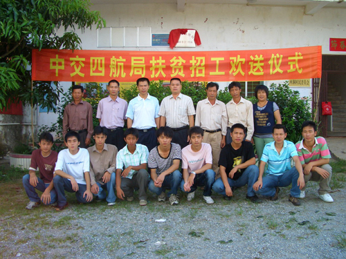 2007年6月18日,中交四航局第三批"十百千萬"駐陽西縣儒洞鎮(zhèn)河洞村工作組在駐點村舉行扶貧招工歡送儀式,熱烈歡送九名當(dāng)?shù)厍嗄甑綇V州中交四航局本部進(jìn)行培訓(xùn)。