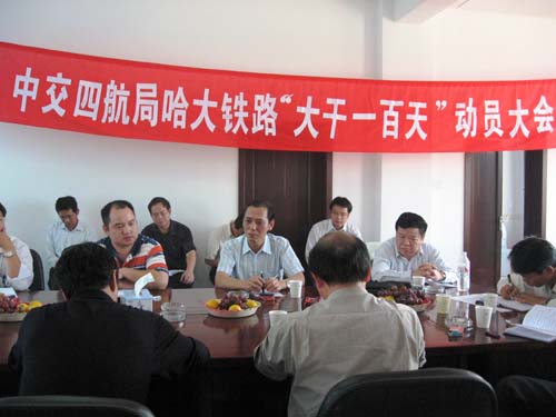 指揮長羅寬榮作了動員報告。羅指揮長強調指出:廣大參戰(zhàn)人員充分認識哈大客運專線項目的重要性、緊迫性、艱巨性。哈大項目是中交成立以來乃至原港灣和路橋有史以來承攬的最大的項目,是鐵道部希望中交成為鐵路建設主力軍的具體體現,對中交實施鐵路戰(zhàn)略具有重大意義。哈大鐵路設計時速350公里,要求精度非常高,而工期非常緊,有效施工時間短,施工難度大,標準高,利潤空間小,增加了實施項目的難度。這場仗只能打勝不能打敗。要利用今年冬凍前短短的寶貴時間,與時間賽跑,要在中交全線工程建設中爭創(chuàng)第一,展示四航形象。每一位員工要為能參加這場大會戰(zhàn)感到無上光榮和倍加珍惜學習提高的機會,要通過項目為四航局培養(yǎng)一批人才。