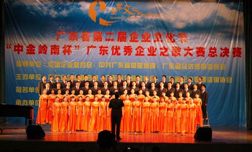 9月28日,由中國企業(yè)聯(lián)合會、廣東省委宣傳部指導(dǎo),廣東省企業(yè)聯(lián)合會主辦的廣東省第二屆企業(yè)文化節(jié)優(yōu)秀企業(yè)之歌總決賽在廣州黃花崗劇院舉行。我公司組織80人合唱團(tuán)演唱的《四航之歌》,喜獲"廣東省十大優(yōu)秀企業(yè)之歌"獎和大賽唯一最佳作詞獎。