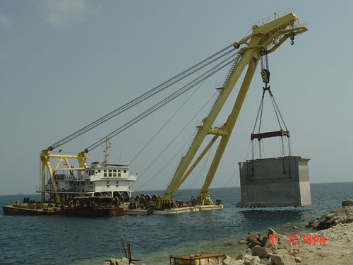 該項目位于蘇丹港港區(qū)進出口航道的口門處,是整個進出港口船舶的必經(jīng)之路,且該處航道狹小,船舶進出頻繁,加上該處常風(fēng)方向為寬廣的紅海,掩護條件差,風(fēng)浪集中,給施工帶來了一定的難度,這期間尤其是對基床拋石和起重安裝作業(yè)干擾和影響大。由于該項目起重安裝及水上拋填工作量大,作業(yè)時間長,給施工安全也帶來嚴(yán)峻考驗。第一個節(jié)點的順利完成,給項目部增加了不少信心,現(xiàn)全體成員以高昂的斗志,往項目部的下一個目標(biāo)--完成12萬方基床拋石進發(fā)。