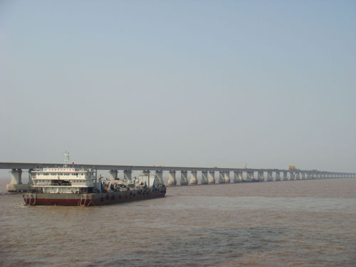 金塘大橋項目部的全體員工在認(rèn)真做好防御臺風(fēng)、寒潮大風(fēng)的同時,抓住一切有利時機,見縫插針地組織箱梁安裝工作,在有限的施工條件下發(fā)揮最大的安裝效率,至2007年11月8日止,共已完成箱梁安裝245片,占需安裝箱梁總數(shù)470片的52%。