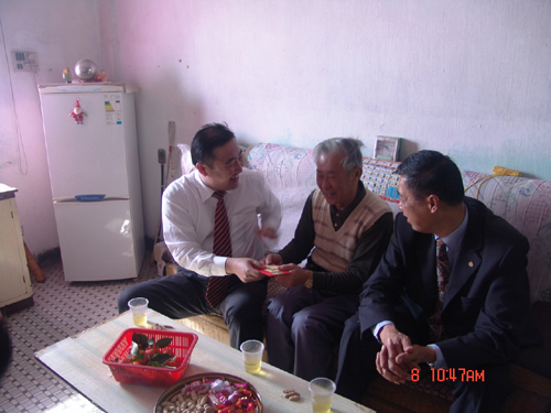 會后,梁卓仁董事長等一行在三公司領(lǐng)導(dǎo)的陪同下,走訪慰問了離退休職工、困難職工以及孤兒家屬代表,向他們致以節(jié)日的問候并送上慰問金。在慰問過程中,梁董事長認真聽取了離退休老同志及困難職工的意見,對他們提出的困難和要求當(dāng)場指出了解決的辦法。