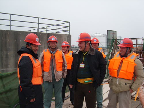 春節(jié)期間,四航局董事長(zhǎng)梁卓仁在三公司副總經(jīng)理秦慶生的陪同下,冒著陣陣寒風(fēng)來(lái)到了欽州中石油10萬(wàn)噸級(jí)碼頭工地,親切慰問(wèn)春節(jié)期間堅(jiān)守在工地施工的所有員工。梁董事長(zhǎng)還登上"防城港"號(hào)浮船塢及粵工拖"41"號(hào)等船組,拜訪業(yè)主并與業(yè)主領(lǐng)導(dǎo)進(jìn)行了親切地交談。