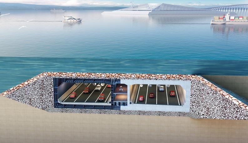 深中通道地處珠江中游核心區(qū)域,直接連接深圳經(jīng)濟(jì)特區(qū)與中山市、江門市,是世界級(jí)的集橋梁、隧道、人工島和地下互通于一體的超大型跨江集群工程,主體工程全長(zhǎng)約24千米,沉管隧道段全長(zhǎng)6845米,采用雙向8車道,設(shè)計(jì)時(shí)速100km。其中,預(yù)制沉管段長(zhǎng)5035米,由32節(jié)管節(jié)和1個(gè)最終接頭組成。