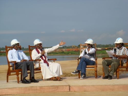 目前漢班托塔項目施工進展順利,預制場扭王字塊預制施工、圍堰防滲墻導墻施工、防波堤推填、基坑絞吸挖泥、采石場爆破開采、碎石場生產(chǎn)等火熱的工作場面正好為此次采訪背景增添了不少亮色。