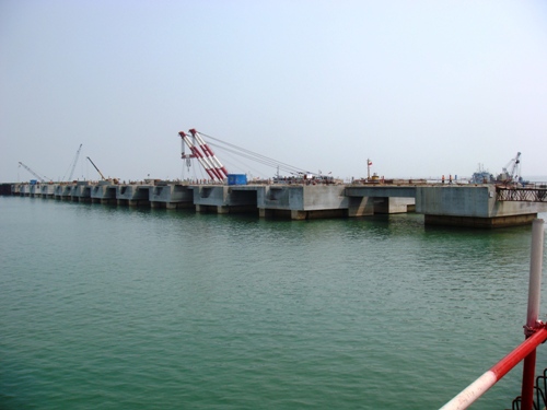 該項(xiàng)目自2007年6月份開(kāi)工以來(lái),三公司欽州港項(xiàng)目部不斷解放思想,實(shí)施技術(shù)創(chuàng)新,在施工中取得了重大突破。目前36萬(wàn)立方米的基床拋石、整平以及40件沉箱的安裝已經(jīng)全部完成,胸墻澆注了30段,梁板安裝了300件,累計(jì)已完成產(chǎn)值達(dá)2.3億元,有望于今年6月份交付業(yè)主投入使用,比原計(jì)劃提前1個(gè)月完成。