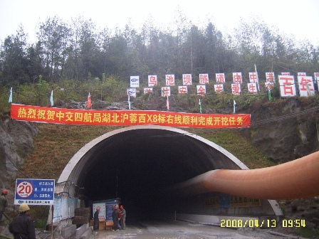 自2006年1月18日開(kāi)工以來(lái),項(xiàng)目部克服前期進(jìn)場(chǎng)道路無(wú)法通行、水電嚴(yán)重不足、通訊通信不通、山區(qū)生活條件艱苦、拆遷問(wèn)題突出、場(chǎng)地嚴(yán)重不足、村民阻攔施工、主材地材嚴(yán)重缺乏、距離業(yè)主指揮部和高監(jiān)辦路程崎嶇遙遠(yuǎn)和50年不遇的山洪、干旱、雪災(zāi)等自然災(zāi)害及單端掘進(jìn)、逆向排水、通風(fēng)排煙等眾多不利因素,嚴(yán)格管理,規(guī)范作業(yè),開(kāi)展以"保質(zhì)量、保安全、保進(jìn)度"勞動(dòng)競(jìng)賽活動(dòng),經(jīng)過(guò)814個(gè)日日夜夜的艱苦鏖戰(zhàn),曾創(chuàng)造了全斷面月掘進(jìn)210米、二襯月完成260米的好成績(jī)。