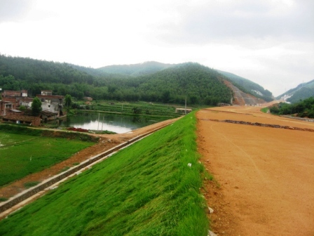 在邊坡防護中,善于根據(jù)季節(jié)、天氣變化,靈活安排時間,搶抓進度,促進綠色植物生長。特別是針對路基邊坡開挖后的地質與原設計有所不同、原設計的綠化方案不夠"綠色"的實際情況,廣明二段多次組織召開會議,邀請有關專家和綠化隊伍進行研究、商討,改進施工方案。
