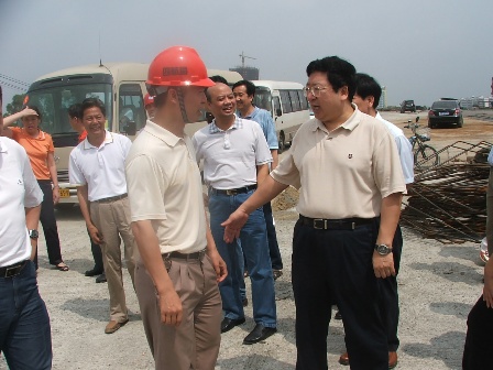 5月3日,南寧市市長陳向群在業(yè)主南寧市城市投資發(fā)展總公司楊榮才總經(jīng)理陪同下到四航局一公司桃源、北大大橋項目部承建的桃源、北大大橋視察檢查工作。陳市長向工作在生產(chǎn)一線并放棄五一休假的四航局的員工表示慰問,同時對工程的質(zhì)量和進(jìn)度情況表示滿意。陳市長先后查看了桃源大橋西引橋和北大大橋南引橋的拆遷工作完成情況,提出有關(guān)單位要加大工作力度,加強(qiáng)協(xié)作,做好被拆遷戶的說服工作,以確保拆遷工作于5月份內(nèi)全面完成,陳市長同時對大橋路燈及欄桿的選型提出了寶貴的建議。