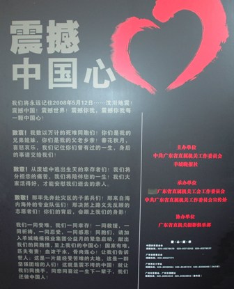 本次圖片展包括地震災情、黨和國家領導人親臨災區(qū)指揮抗震救災、人民子弟兵及廣大醫(yī)護人員在一線搶險救災等生動感人的照片100幅,真實直觀地再現(xiàn)了汶川大地震帶來的巨大災難。望著一張張淚流滿面的臉,看著救援人員被碎石瓦礫劃傷的雙手,白發(fā)蒼蒼的老人無助的神情……震撼著每個人的心靈,大家深深感受到中國人民敢于拼搏的昂揚斗志和不屈不撓的精神風貌及一方有難,八方支援,川粵同心、患難與共的摯熱情懷,生動詮釋了中國共產(chǎn)黨以人為本、執(zhí)政為民的光輝形象。