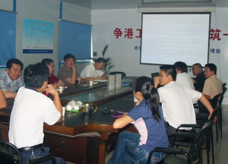 該項(xiàng)目部向客人介紹了在建的湛江港新建油碼頭、寶滿集裝箱泊位、東海龍騰物流碼頭的規(guī)劃、建設(shè)和施工等,并通過(guò)幻燈片詳細(xì)介紹了油碼頭的施工條件、施工特點(diǎn)、施工工藝及施工管理等情況,隨后帶領(lǐng)客人到新建油碼頭、鐵礦工石碼頭進(jìn)行參觀。