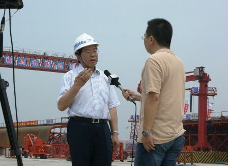 當(dāng)天,周董事長還在該項目部制梁場接受了中央電視臺"焦點訪談"欄目記者的現(xiàn)場采訪。