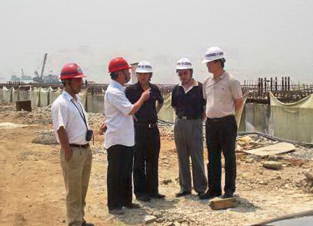 在施工現(xiàn)場(chǎng),孫國強(qiáng)認(rèn)真聽取了海滄項(xiàng)目施工生產(chǎn)情況匯報(bào),并詳細(xì)了解施工中遇到的實(shí)際困難,對(duì)施工質(zhì)量及進(jìn)度給予了肯定。他鼓勵(lì)員工發(fā)揚(yáng)四航人善打硬仗的精神,在確保安全、質(zhì)量的情況下爭(zhēng)取提前交工。