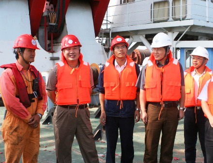 當(dāng)天,董事長梁卓仁在二公司總經(jīng)理李惠明等領(lǐng)導(dǎo)陪同下來到施工現(xiàn)場向項目部表示祝賀。梁董事長參觀了剛剛安裝完畢的箱梁,仔細(xì)詢問了安裝過程。他指出,要嚴(yán)格按照計劃工期開展施工,確保工程質(zhì)量,克服現(xiàn)有不利因素的影響建好海灣大橋,打出四航局在北方市場的知名度;同時也要處理好與業(yè)主、監(jiān)理、兄弟單位及地方行政單位的關(guān)系,做好服務(wù)工作,在各施工單位競賽中互相學(xué)習(xí),和諧相處,爭當(dāng)一流。