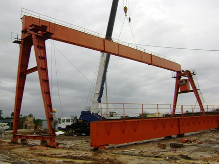 近日,尼日利亞拉格斯防波堤修復工程經過15天的拼搏,順利完成預制場的10t門機主體安裝。