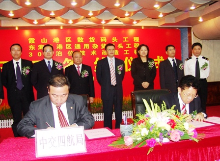 11月13日,湛江港霞山港區(qū)大型散貨碼頭工程、東海島港區(qū)通用雜貨碼頭工程、調(diào)順港區(qū)300號(hào)泊位技改工程開(kāi)工簽字儀式在湛江港海港大廈順利舉行,廣東省經(jīng)貿(mào)委主任楊建初,湛江市領(lǐng)導(dǎo)陳耀光、嚴(yán)植嬋、王中丙、鄧振新等出席了簽字儀式。四航局董事長(zhǎng)梁卓仁代表施工單位在儀式上發(fā)表講話并與湛江港集團(tuán)董事長(zhǎng)鄭日強(qiáng)簽署了湛江港300號(hào)碼頭技術(shù)改造工程合同。