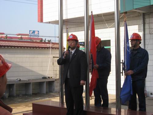 又訊 2009年1月1日,新年第一天,二公司項(xiàng)目部營區(qū)建設(shè)報(bào)捷,煥然一新。上午九時(shí)整,項(xiàng)目部全體員工在項(xiàng)目部領(lǐng)導(dǎo)楊凱、程強(qiáng)等帶領(lǐng)下,列隊(duì)舉行升旗儀式。隨后,開始搬入新營區(qū)辦公,緊鑼密鼓地展開新的工作。