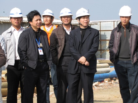 市委書記陳耀光、市長阮日生等領(lǐng)導(dǎo)與鄭董事長一道走到施工前沿,察看熱火朝天的施工現(xiàn)場,并向節(jié)日期間堅守崗位的建設(shè)者表示慰問。市委書記陳耀光強(qiáng)調(diào),湛江港要抓住機(jī)遇、加快建設(shè)步伐,各施工單位要嚴(yán)格抓好安全、質(zhì)量管理工作,確保工程優(yōu)質(zhì)安全地完工。