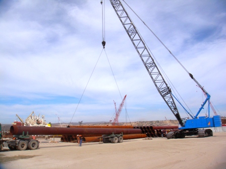 該項(xiàng)目部高度重視本次卸船任務(wù),提前準(zhǔn)備了近30人的卸船組,召開(kāi)卸船方案交底會(huì)議,并沿運(yùn)輸線路做了現(xiàn)場(chǎng)交底。鋼管樁運(yùn)抵后,項(xiàng)目部又想方設(shè)法優(yōu)化裝卸手段,經(jīng)過(guò)穩(wěn)定性計(jì)算及現(xiàn)場(chǎng)操作手經(jīng)驗(yàn)評(píng)估,及時(shí)修正作業(yè)程序改為同時(shí)裝卸2節(jié)管樁。經(jīng)過(guò)多方的共同努力,最終安全高效地完成了本次卸船作業(yè)。