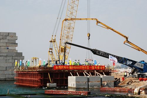沙特RSGT碼頭工程首段胸墻澆筑完成