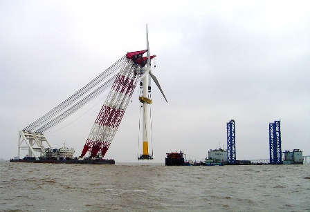 四航奮進(jìn)號(hào)安裝我國(guó)首個(gè)海上風(fēng)力發(fā)電場(chǎng)風(fēng)機(jī)