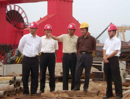 4月22日上午,廣東省交通廳港口航道局局長鄧立文、江門交通局局長肖繼明等在四航局新會基地的業(yè)主和施工單位的領(lǐng)導(dǎo)陪同下,到基地施工現(xiàn)場進行檢查并指導(dǎo)工作。