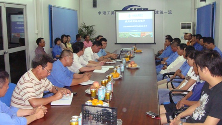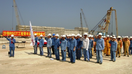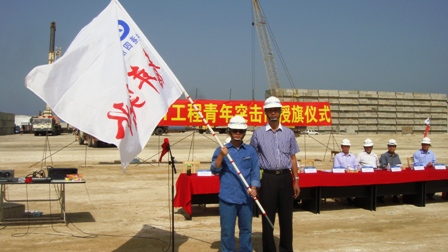 4月26日,阮祥發(fā)副書(shū)記一行到沙特吉達(dá)港RSGT項(xiàng)目,深入到岸上施工一線和數(shù)十公里外戈壁沙漠中的采石場(chǎng)了解項(xiàng)目組織實(shí)施情況,并參加了項(xiàng)目部創(chuàng)建青年文明號(hào)的"青年突擊隊(duì)"授旗儀式,親自為項(xiàng)目部青年突擊隊(duì)授旗。在吉達(dá)港,針對(duì)項(xiàng)目部所處的穆斯林宗教特殊環(huán)境和項(xiàng)目部員工生活相對(duì)比較枯燥單調(diào)的情況,阮祥發(fā)除了與員工談心,和班子座談,和員工共用工作餐外,還登上起九船組和方駁8401,看望慰問(wèn)船員,與船員座談和共進(jìn)午餐,了解船員心聲,大大鼓舞了項(xiàng)目部員工士氣。