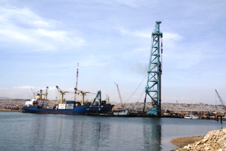 洛比托擴建工程集裝箱碼頭首根鋼管樁施打完成