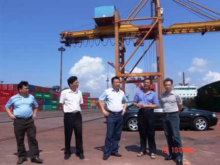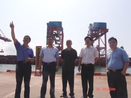 李主任一行首先驅(qū)車到湛江港,實(shí)地考察了早年由三公司承建、正在繁忙作業(yè)的集裝箱作業(yè)區(qū),對(duì)集裝箱碼頭使用多年,工程的質(zhì)量仍然保持完好給予了高度的評(píng)價(jià)。同時(shí),李主任一行還拜訪了湛江市港務(wù)集團(tuán)有關(guān)部門負(fù)責(zé)人,雙方就設(shè)備采購(gòu)與管理、員工技能培訓(xùn)、港口規(guī)劃等方面進(jìn)行了交談,交流了加強(qiáng)港口建設(shè)管理等方面的經(jīng)驗(yàn)。