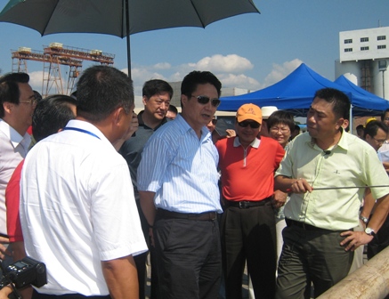 李向陽(yáng)根據(jù)馬村港區(qū)平面圖及遠(yuǎn)景規(guī)劃圖為羅保銘省長(zhǎng)詳細(xì)介紹馬村港工程的概況及其投資意義。羅保銘對(duì)馬村港工程的的施工進(jìn)度和施工質(zhì)量表示贊揚(yáng),對(duì)全體員工為馬村港做的貢獻(xiàn)給予了充分的肯定,并勉勵(lì)員工們?cè)俳釉賱?lì),保質(zhì)保量按時(shí)完成任務(wù)。