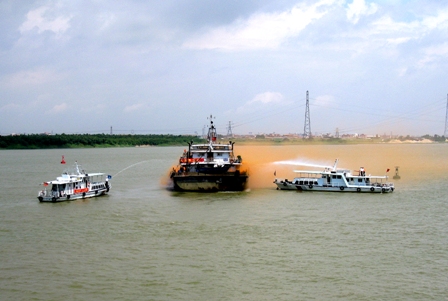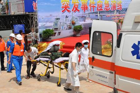 此次演練主要是針對(duì)北江進(jìn)入汛期期間,正在興建的貴廣鐵路北江特大橋面臨洪汛險(xiǎn)情重大考驗(yàn)時(shí),施工單位與海事部門如何協(xié)同作戰(zhàn)、應(yīng)急處置。上午9時(shí)30分,演練正式開始,先后進(jìn)行運(yùn)沙船起火引起失控漂流、施工人員溺水急救和汛期設(shè)備轉(zhuǎn)移、水上漂流物清除、人員撤離等三項(xiàng)內(nèi)容。在接到險(xiǎn)情報(bào)告后,應(yīng)急指揮中心啟動(dòng)突發(fā)事件應(yīng)急快速反應(yīng)系統(tǒng),嚴(yán)格按照系統(tǒng)的要求和規(guī)定進(jìn)行應(yīng)急處置。11時(shí)許,運(yùn)沙船被控制,溺水人員得到救治,汛期險(xiǎn)情被解除,演練取得圓滿成功。