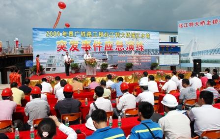 四航局黨委副書記阮祥發(fā),佛山市安監(jiān)局、海事局和貴廣鐵路佛山段監(jiān)理、施工單位領(lǐng)導(dǎo)到演練現(xiàn)場(chǎng)觀摩并講話,對(duì)本次演練活動(dòng)給予充分肯定,希望四航局貴廣鐵路工程指揮部和佛山市海事局通過本次演練,進(jìn)一步把貴廣鐵路建設(shè)的各項(xiàng)安全工作做得更實(shí)、更細(xì)、更好,確保安全生產(chǎn),切實(shí)提高突發(fā)事件的應(yīng)急處置能力,最終實(shí)現(xiàn)"構(gòu)建平安貴廣鐵路"的目標(biāo)。