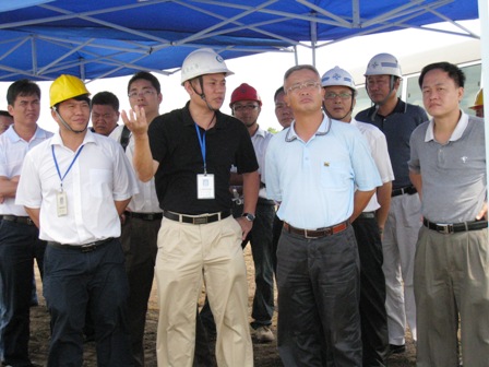 7月2日,??谑懈笔虚L袁光平一行在海南港航控股副總裁麥衛(wèi)斌等的陪同下,蒞臨三公司??隈R村港區(qū)擴(kuò)建一期項(xiàng)目部工地視察指導(dǎo)工作。
