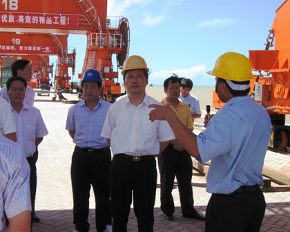 在碼頭施工現(xiàn)場,李金早認(rèn)真聽取了工程技術(shù)人員對(duì)當(dāng)前的安全生產(chǎn)情況匯報(bào),對(duì)該項(xiàng)目部的生產(chǎn)進(jìn)度、安全管理給予充分肯定,同時(shí)并希望項(xiàng)目部再接再厲打好攻堅(jiān)戰(zhàn),確保今年底欽州港保稅區(qū)封關(guān)運(yùn)作。