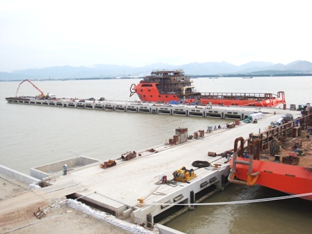 二公司新會(huì)項(xiàng)目部自開工以來,克服了新會(huì)地區(qū)高溫、雨季天氣影響,繼按時(shí)完成滑道工程、79米長(zhǎng)引橋工程等節(jié)點(diǎn)后,又在確保安全、質(zhì)量的前提下,提前完成了舾裝碼頭工程施工任務(wù),得到業(yè)主和監(jiān)理單位的一致好評(píng)。