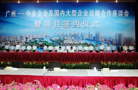 此次活動(dòng)是廣州市在國務(wù)院有關(guān)部委和廣東省委、省政府的指導(dǎo)支持下,邀請國務(wù)院國資委、國家教育部、鐵道部和70多家中央企業(yè)及國內(nèi)大型企業(yè)的領(lǐng)導(dǎo)參加的一次重大招商活動(dòng)。中共中央政治局委員、廣東省委書記汪洋,國務(wù)院國資委主任李榮融、廣東省省長黃華華等有關(guān)部委和廣東省、廣州市的領(lǐng)導(dǎo)出席高層戰(zhàn)略合作座談會(huì),充分肯定了中央企業(yè)對廣東省、廣州市社會(huì)經(jīng)濟(jì)發(fā)展的重要作用和突出貢獻(xiàn),并共同見證項(xiàng)目合作協(xié)議簽訂。國務(wù)院國資委主任李榮融在座談會(huì)上作了重要講話,并在8月4日作了國有企業(yè)改革發(fā)展專題報(bào)告。