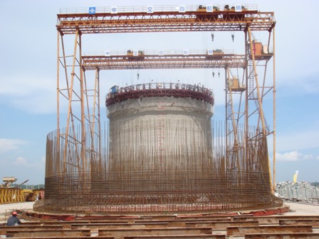 8月28日,欽州港大欖坪3號(hào)-8號(hào)泊位碼頭工程首個(gè)圓筒順利澆筑完成。