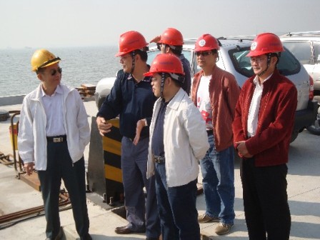 11月4日,廣東省交通廳港航局局長(zhǎng)鄧立文、基建副處長(zhǎng)韋召文一行到四航局新會(huì)基地指導(dǎo)工作。